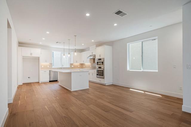 Plan 3 Rows offers 4 bedrooms and 3.5 bathrooms with a side-by-side garage and a beautifully landscaped courtyard entrance. The open layout features a spacious kitchen with a large island, an inviting dining area, and a first-floor bedroom ideal for guests or a home office. Enjoy a generous outdoor deck, perfect for relaxing or dining al fresco. The home includes stylish paint-grade shaker cabinetry and 4" recessed lighting throughout. Solar panels can be leased or purchased, and the home is move-in ready. Ownership is condominium. City Village, by respected builder SummerHill Homes, presents 404 thoughtfully designed new homes in the heart of San Ramon. This active community includes a 2-acre public park, scenic biking and walking paths, peaceful sitting areas, and a shared BBQ area. Conveniently located near the City Walk district and less than a mile from the vibrant City Center with top shopping, dining, and entertainment. Close to Iron Horse Trail, Bridges Golf Club, transit, schools, and major employers. Photos may include renderings or options that vary by home.