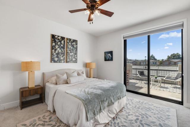 This complex rarely comes on the market. Located in downtown Campbell next to the historic Water Tower, this home has all the best Campbell has to offer. Great restaurants, shops,cafes, bakeries and bars. Downtown also has the best Farmer's market and you can walk to it! 2 primary suites plus a separate powder room. Light and airy with loft like windows, open kitchen with eating bar, dining area and living room. 2 terraces, inside laundry, fresh paint and new carpet. Custom shades, newer refrigerator and washer. Bike storage. Water and garbage included in HOA. Walking distance to Light Rail and Los Gatos creek trail. Secured parking with 2 spots. Small public park in front of building near water tower and private park in rear of building.HOA has strong reserves.