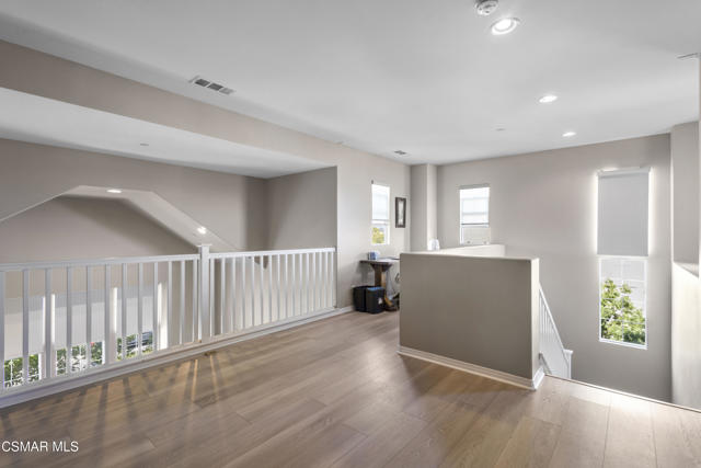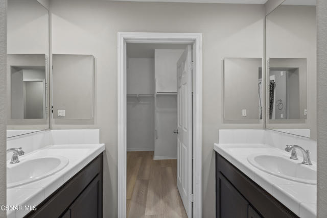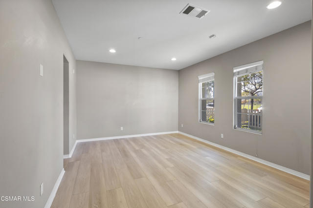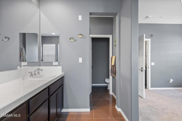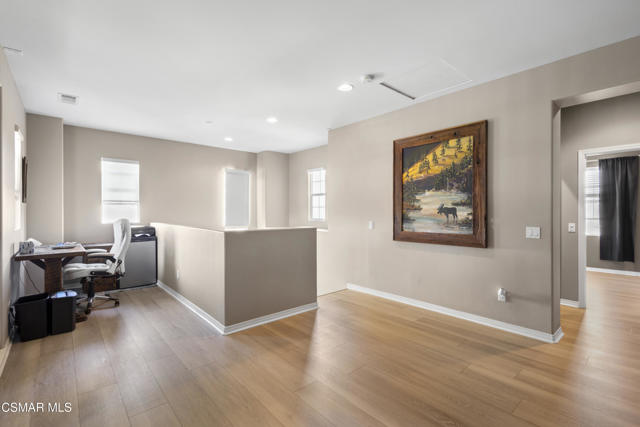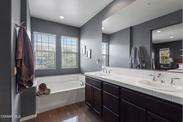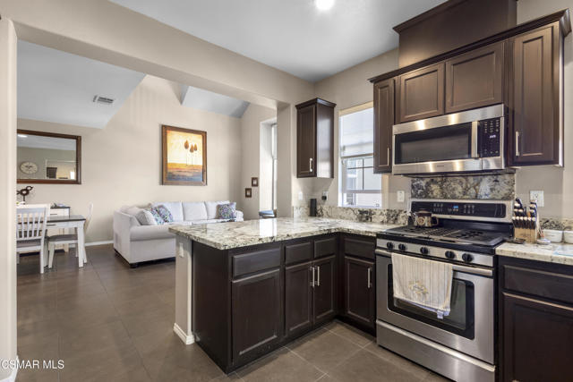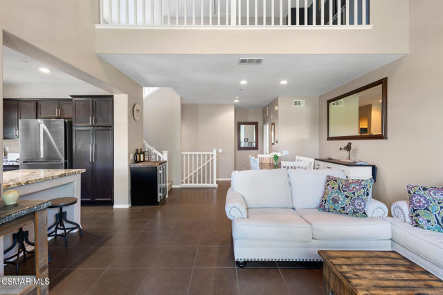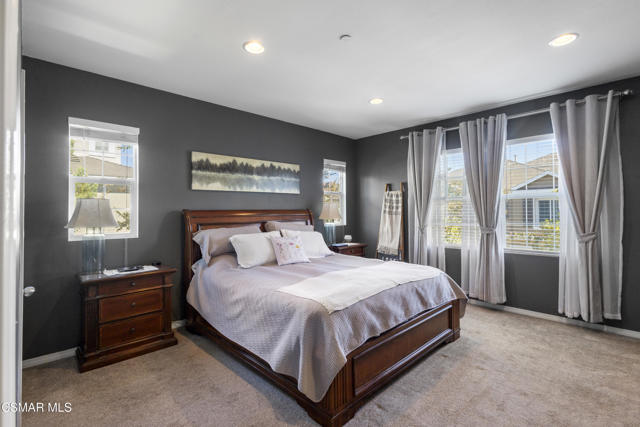 Rarely available Luxury Avenue end-unit townhome by Standard Pacific Homes in the Riverpark community with views that are second to none. This 2,385 sqft, 3-bedroom, dual primary bedroom / 3.5 bath home delivers sweeping panorama across Central Park, the Topa Topa Mountains, and the iconic Two Trees. Perfectly located across from Central Park--with its water feature, running path, and beautiful landscaped grounds--and within a short distance of The Collection at Riverpark shopping center, this property offers both convenience and unmatched surroundings.The bright and open second-floor living area is the heart of the home, featuring vaulted ceilings, custom tile flooring, expansive windows, and endless views from the living room, dining area, kitchen, and office nook. The modern kitchen includes granite countertops, dark contemporary cabinetry, and premium Bosch appliances. Also on this level is the spacious primary suite, conveniently located near the main living areas.On the first floor, you'll find a private secondary master suite with its own expansive bath and closet, making it an ideal setup for a mother-in-law suite or additional rental income. Upstairs, an open loft offers flexible space for a media room, gaming area, or children's play space. A third bedroom is also included, giving you versatility for family, guests, or office use.Upgrades throughout the home include Levlor electric window shades, premium Cali Bamboo LVP plank flooring in bedrooms, custom large format tile, newer premium carpet, recessed lighting, linen cabinets on each floor, custom upholstered window bench in living area, ADT security Panel, Ring door bell, Nest thermostat and Sherwin Williams Duration interior paint. The custom garage is a true highlight, designed with top-of-the-line Burberry patterned SwissTrax Ribtrax flooring, black designer track lighting, Wifi side mount garage opener, 50 amp Nema 14-50 Electric car charger, overhead storage racks, a storage room with shelving, and mounted TV. Unlike some Riverpark homes, this unit has a full two-car garage door and a private two-car driveway. Also situated in the smallest building with fewer units connected compared to its neighbors. Out front, enjoy a small patio and fenced grassy yard that extend your living space outdoors.Not all Avenue units are the same! This one is the best due to the larger living area windows expanding the view unlike others. It is positioned further up Central Park and facing west, capturing spectacular sunsets and the best views in Riverpark. Priced to sell, this is the best value in the community and a rare opportunity that will not last.