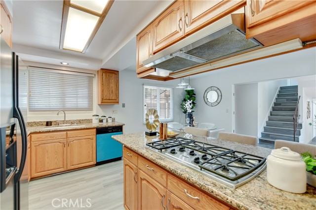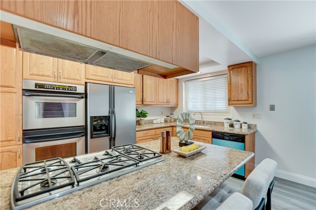 The heart of the home is the stylishly remodeled kitchen, complete with granite countertops, stainless