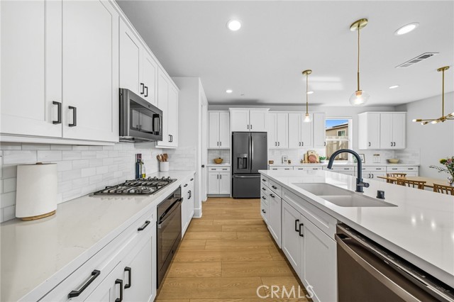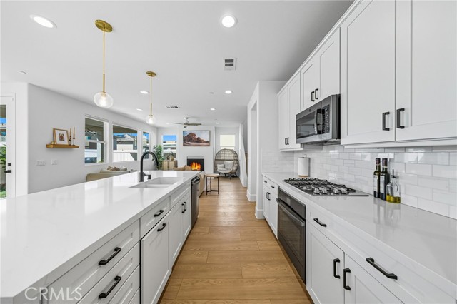 Welcome to 32017 Radiant Drive, a fantastic, fully updated, 4-bedroom, 3-bathroom home with a 2-car garage in a highly desirable Temecula community. This property is built for modern living, offering a perfect blend of stylish interiors, incredible amenities, and a convenient location. It's a turnkey opportunity to secure a vibrant, amenity-rich lifestyle. Inside, you will find high ceilings, recessed lighting, and a mix of upgraded luxury vinyl plank, tile, and carpet flooring not only for easy maintenance, but also for added style. When it comes to layout, this house speaks to convenience, as it includes a main-level bedroom and full bathroom, providing ideal flexibility for you and your guests. The gourmet kitchen features Quartz counters and a large island that flows openly to the family room with a fireplace - perfect for gatherings so you won't miss any of the action. Outside, you can easily relax on the covered patio with views of the surrounding hills. By living here, you don't just enjoy the comforts of your turnkey home. You can also access amazing facilities such as the community pool, spa, clubhouse, gym, sports courts, dog park, and miles of biking/hiking trails!