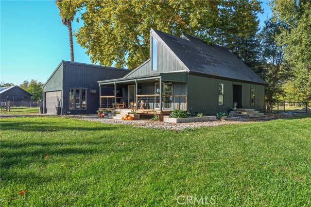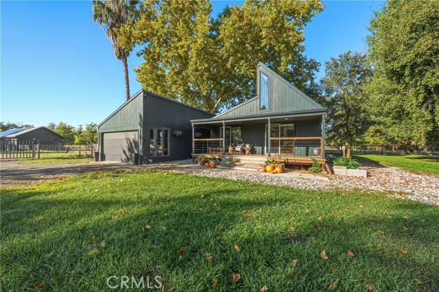 Income Producing Property - Modern Farm on 10 Acres Income producing and completely remodeled, this stunning 3-bedroom, 2-bath home sits on 10 level acres, 8.5 planted with over 550 mature Chandler walnut trees. Featuring high-end finishes and modern touches throughout, the home offers an open floor plan with custom windows framing beautiful views in every direction. Downstairs includes two bedrooms and a full bath, while the upstairs primary suite boasts a breathtaking custom bathroom with black marble walls, large windows overlooking the property, a skylight shower, and designer details that truly impress. Around the home, an acre is fenced with custom modern wood fencing and electric gates, opening to a pristine lawn and spacious porch. The property includes two wells- one for the orchard, producing approx. 300 GPM and another for the home and landscaping. Additional improvements include an open barn, a large shop with a finished room and mini-split (ideal for greenhouse use or potential second-unit conversion), a flower and veggie garden with enriched soil ready to plant and all automated drip, a chicken coop and run, and a greenhouse structure ready to be enclosed. Close to town yet private and peaceful, this is the perfect modern farm property for those seeking luxury, beauty, and income potential all in one. Once you step onto this estate, you’ll fall in love.