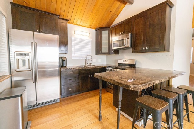 Discover this beautifully upgraded 2-bedroom, 1-bath cabin in Arrowbear Lake, ideally located between Lake Arrowhead and Big Bear Lake. This charming home combines the warmth of a cozy mountain retreat with the comfort of modern upgrades throughout.