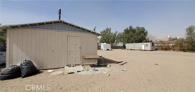 Large Ranch style family home located on over an acre of land in the Soapmine area or Barstow. Perfect for big families with 4 Bedrooms plus a 5th bonus room with no closet. There is a living room with tongue and groove ceilings and a wood burning fireplace to keep you warm on those winter nights. Inside laundry room with additional bonus space that can be used for storage or possibly an office or 6th bedroom also has no closet? There is a large bright family room that has a door out to the back yard. 2 storage sheds that both contain electricity. One is a 40 ft storage container. Come bring the entire family, pets and all your toys. This house is perfect for the right family.