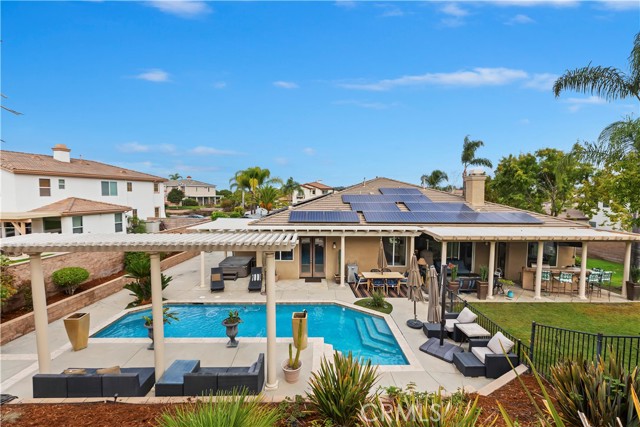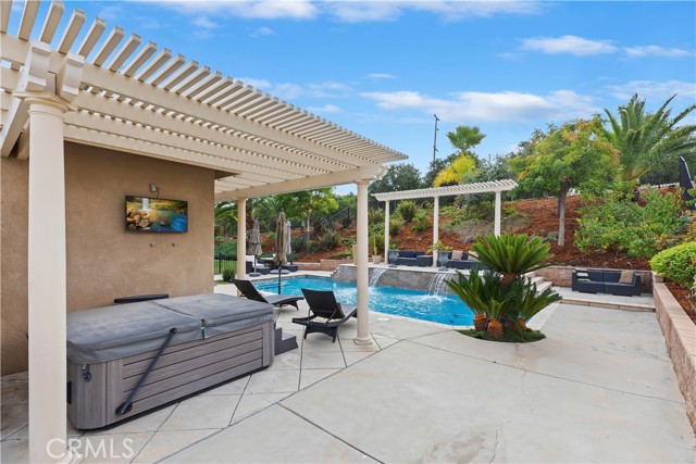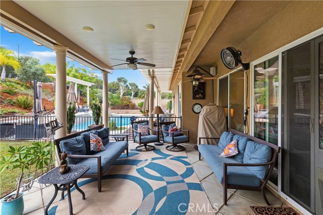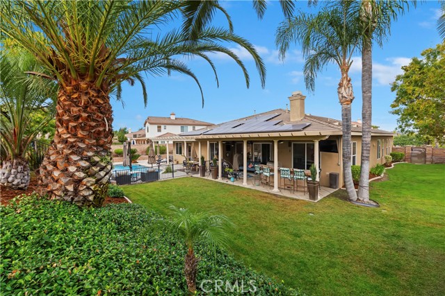 LIFESTYLE WISH LIST GRANTED! Rise above and come home to luxury, everyday. Exclusive Gated Rancho Valencia orange grove pool home is a single-story gem offering much more than just a prime location. Sellers have done a lot of upgrading in this 5 bedrooms/3 bath exclusive residence home is a must see! Inside the grand door, discover an inviting, thoughtful layout to make everyday life more comfortable and efficient, effortlessly accommodating your needs. The open family room/kitchen features an oversized island, adjacent eating area, and custom built-ins around the fireplace. This beckoning space facilitates everything from quiet cozy evenings to game nights, movie time, or festive evenings for large gatherings. The bright, spacious primary bedroom boasts an ensuite bath with ample mirrors, dual walk-in closets with custom closet organizers. Imagine getting ready for your day with plenty of room and amenities and no crowding or stress. In the evening, the soft glow of sunset streams through the windows or on the multi-leveled patios to create a serene atmosphere when it's time to unwind. Rest assured, meticulous maintenance ensures the home has been lightly used and the mechanical integrity is sound. Modern comforts, including two HVAC systems, cloud based surveillance cameras, whole house fan, and a 75 gallon water heater the list goes on. A fully owned solar system (59 panels) provides low to no cost power for your house and your garaged EV. Outside, the manicured landscape with blooming trees, plenty of grass, plus a bountiful mini fruit orchard and vineyard reflect years of planning and investment by the current owners. Two out-buildings add plenty of storage (one even has AC and electrical to it). RV/boat parking in the side yard accommodates recreational toys and features a 50 AMP plugin for your RV. Super clean garage has loads of cabinet storage. For a home that pairs practicality with luxury living, this LOCATION is PRIME and the value is unbeatable. For the fortunate few, dreams do come true- come experience yours TODAY. With right offer everything will stay, (except some external furniture excluding personal items ).