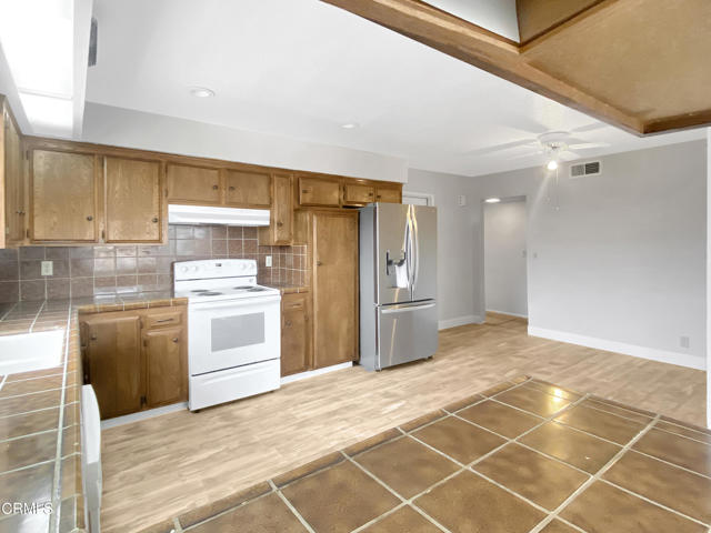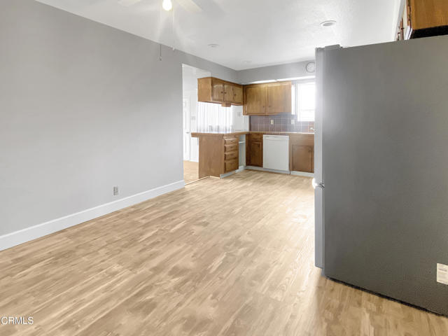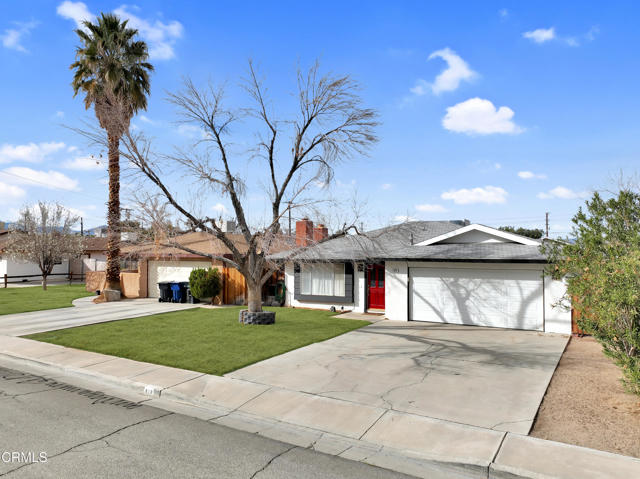 Welcome to this charming 3-bedroom, 2-bathroom home nestled in the heart of Ridgecrest! This inviting residence boasts a spacious front yard with lush green grass and a majestic palm tree, offering exceptional curb appeal. Step inside to discover a cozy living room featuring a beautiful brick fireplace, perfect for warming up on cool evenings. The kitchen is a chef's dream, equipped with modern stainless-steel appliances, ample wooden cabinetry, and a delightful view of the backyard through a large window. The open dining area seamlessly connects to the kitchen, providing an ideal space for entertaining guests.The generously sized bedrooms offer plush carpeting and ceiling fans for comfort, with the primary bedroom featuring a walk-in closet. The expansive backyard presents a blank canvas for your imagination, with a vast open space, a storage shed, and room for gardening, play, or outdoor gatherings. The home's fresh paint and well-maintained interior create a bright and welcoming atmosphere throughout.With its combination of comfort, charm, and potential, this property is a must-see for anyone looking to settle in a friendly neighborhood with mountain views and easy access to local amenities. Don't miss the opportunity to make this house your new home!