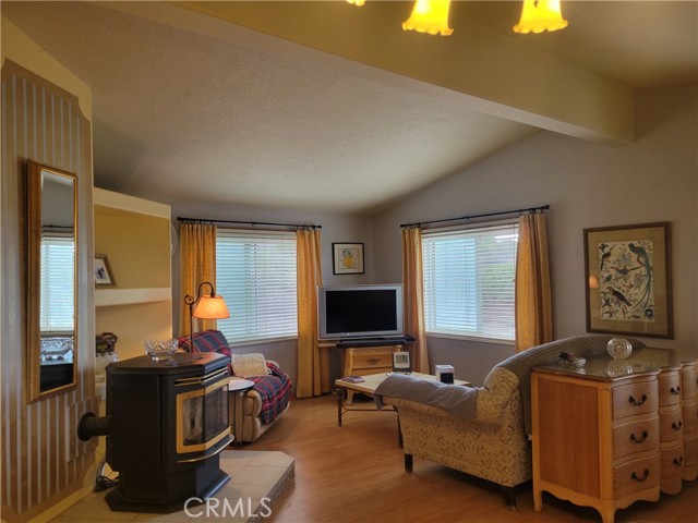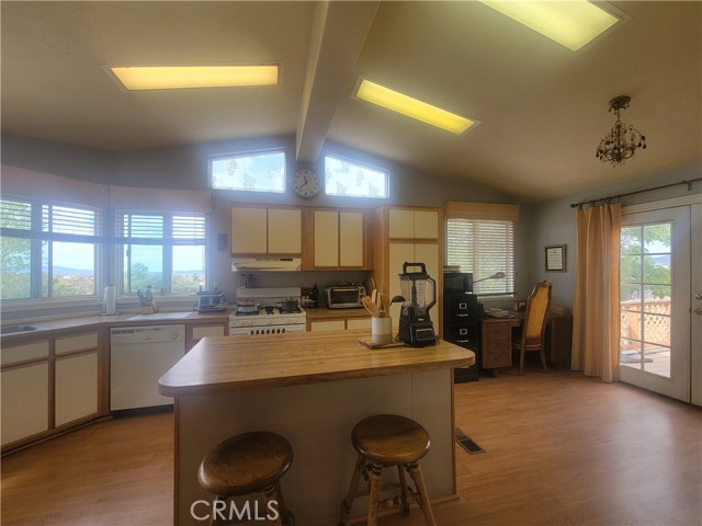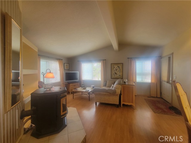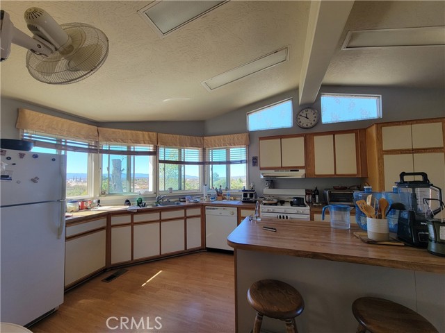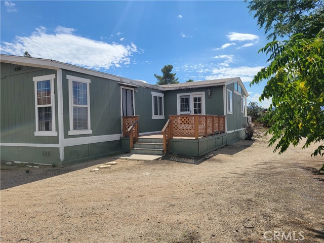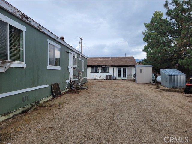 Enjoy peace, privacy, and panoramic views from this inviting 3-bedroom, 2-bath home nestled on a usable 5-acre parcel. Thoughtfully designed for comfort and functionality, this home features front and rear decks, perfect for relaxing or entertaining. Inside, the living and dining areas include a cozy pellet stove—ideal for chilly winter nights. The spacious kitchen has a center island, built-in office area, and a pantry. A wall of windows fills the space with natural light and showcases sweeping views of the surrounding landscape. French doors open onto the rear patio, extending your living space outdoors. You'll find ample storage throughout the home, including large closets . Flooring includes tile in bathrooms, laminate in the main living spaces, kitchen, main bedroom and carpeting in the other 2 bedrooms. For those who love to work on projects or need extra storage, a separate workshop with three rooms provides endless possibilities. There's also a tall timber-framed structure with a roof and open sides—formerly used for RV storage—with potential for many future uses. The fully usable property is fully fenced and has mature pine trees, offering plenty of space for horses, farm animals, gardens, orchards, or whatever your vision may be.
