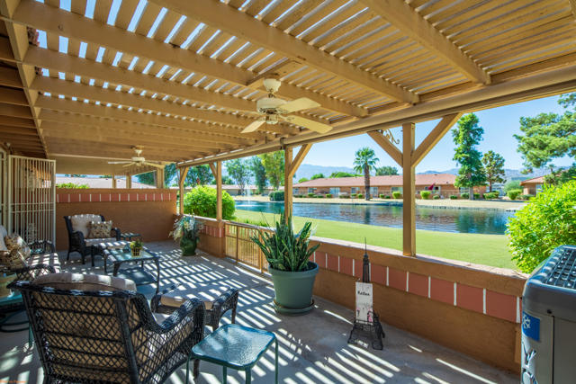 This beautifully updated Mountain and Pond View Condo, located in Indian Palms Country Club, offers a range of appealing features for the discerning buyer. The inviting home showcases white oak flooring, granite countertops in the kitchen, modern cabinetry, and an impressive covered rear patio. Situated on a cul-de-sac, it provides excellent bedroom separation, a lovely enclosed entry patio, a spacious driveway, and a single-car garage. This property is perfect as a full-time residence or an exquisite winter retreat for those looking to escape the harsh winter chill. Has been seasonally rented by return guests for 5+ years that are still interested in future returns!