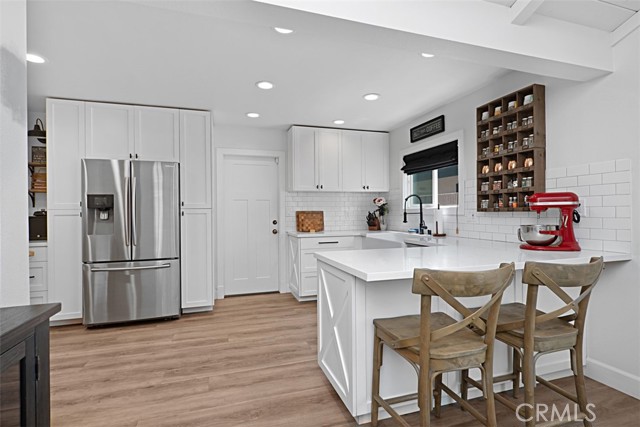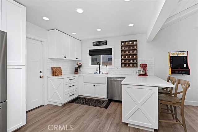Location, Location, Location! Welcome home to this beautifully remodeled single-story ranch-style gem! Featuring 3 spacious bedrooms and 2 full bathrooms, this turnkey property is move-in ready and waiting for you. You'll love the professionally landscaped front and back yard, offering great curb appeal and space to enjoy the outdoors. Step inside to find a stunning, newly designed kitchen with modern cabinetry throughout—including custom storage in the garage for added convenience. The vaulted ceilings and open-concept living and family room create the perfect layout for relaxing or entertaining guests. The primary suite includes a generously sized walk-in closet with built-in shelving for optimal organization. Additional features include: Hardwood and tile flooring throughout – no carpet! Fresh interior paint. Dual-pane windows for energy efficiency. A relatively new, high-performance AC unit. A versatile backyard shed—ideal for lawn tools, or easily converted into a stylish he-shed or she-shed.