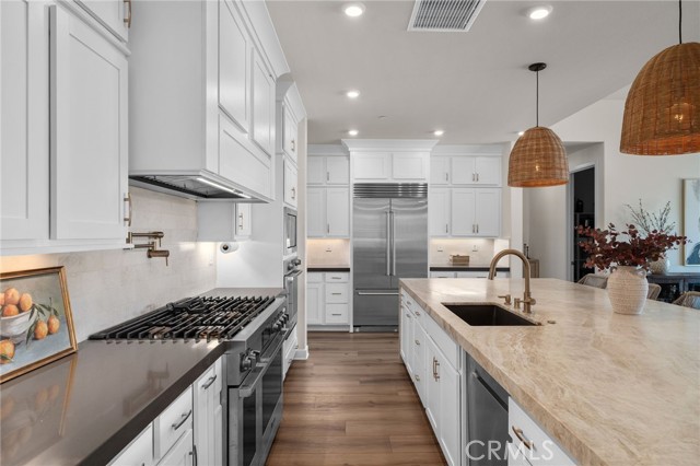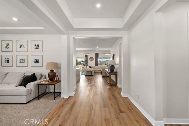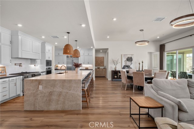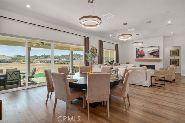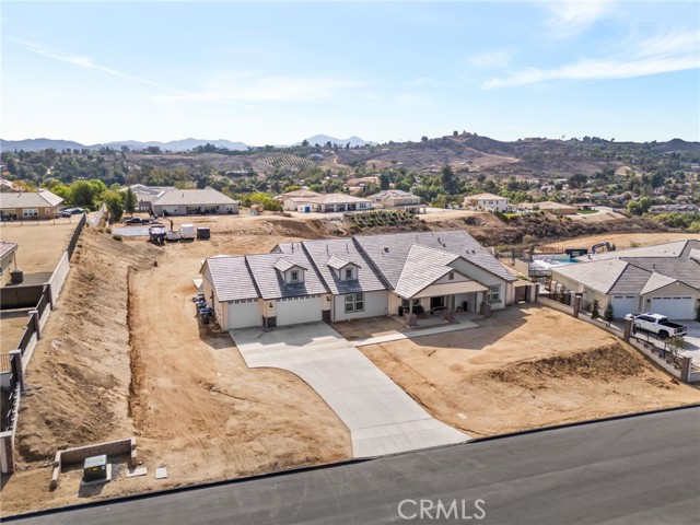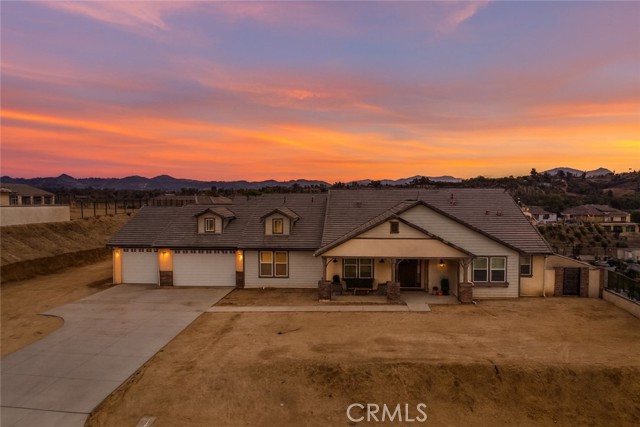 Welcome to Mockingbird Canyon where you can experience modern luxury and family living at its finest. Nestled on over an acre of premium Riverside land, this estate delivers more than 4,100 square feet of thoughtfully designed living space with no detail overlooked. This single-level home features 5 bedrooms and 4½ bathrooms. 4 bedrooms appointed with their own private en-suite bath and generous walk-in closet in all, delivering both comfort and privacy throughout. The heart of the home is the gourmet kitchen, showcasing a stunning 12-foot Taj Mahal quartz waterfall island, 48in Subzero built in fridge, 48in commercial range with pot filler, 3 ovens, and 2 walk-in pantries, all flowing seamlessly into the expansive great room for effortless entertaining. With upgraded wood flooring and plantation shutters throughout. Enjoy California indoor-outdoor living with covered patios, scenic mountain views, and endless potential to create your dream retreat—complete with a 12x16 ft. shed for added functionality. For the car enthusiast, there is a 4-car attached tandem garage ensuring ample storage and vehicle space with a 75ft setback driveway. Complete with owned solar and a house battery, this home combines energy-efficient design with timeless craftsmanship, blending modern sophistication and family comfort in every detail.