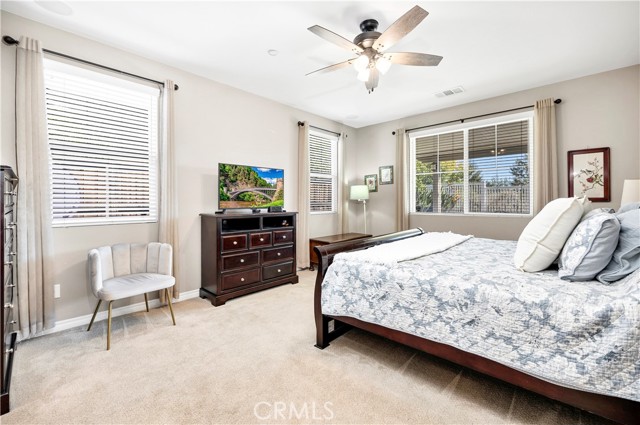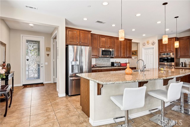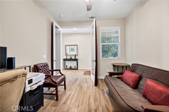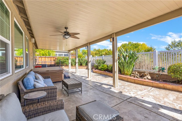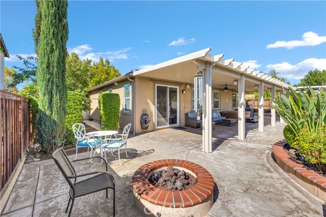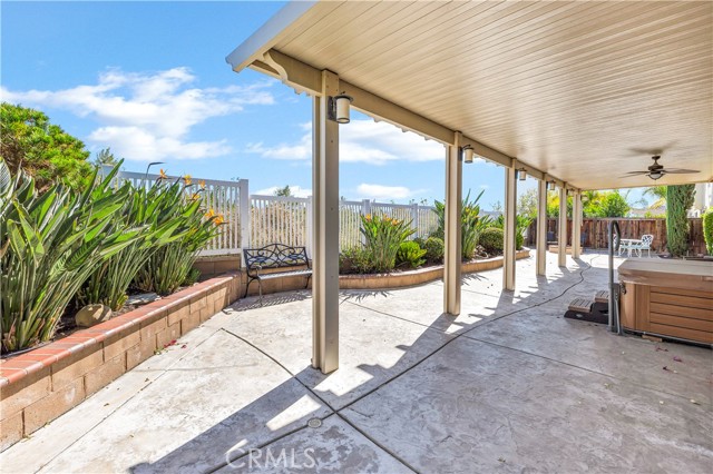 Gorgeous Single-Story Home with Solar in the Sought-After Community of Harveston! This beautiful 3-bedroom, 2.5-bath home plus office offers an open and inviting floor plan designed for both comfort and entertaining. The office, complete with French doors, can easily serve as a 4th bedroom. The large gourmet kitchen features granite countertops, stainless steel appliances, soft-closing drawers, pendant lighting, a spacious walk-in pantry, and ample cabinet space. The kitchen opens seamlessly to the family room with a built-in entertainment center and surround sound. Upgrades include ceramic tile flooring, wood-look tile in the office, and plush carpet in the bedrooms. Enjoy the convenience of indoor laundry, a whole-house central vacuum system, and granite countertops in all bathrooms. The primary suite features an upgraded shower with a sitting bench and an added linen closet for extra storage. Step outside to your private backyard retreat with no rear neighbors—complete with an extended Alumawood patio cover with fan, a cozy fire pit, stamped concrete, fruit trees, and a relaxing Jacuzzi. The 2 car garage offers rafters for additional storage and a utility sink. Harveston is one of Temecula's most desirable communities, favored by so many for the amenities, olympic sized community pool and splash pad, sports parks, easy commuting, shopping, Ysabel Barnett Elementary and Chaparral High School, and of course the LAKE activities! Close to wine country, Promenade Mall, Old Town Temecula, and the 15 Freeway, come and see why Harveston is at the top of the list for buyers looking for communities to live in Temecula!