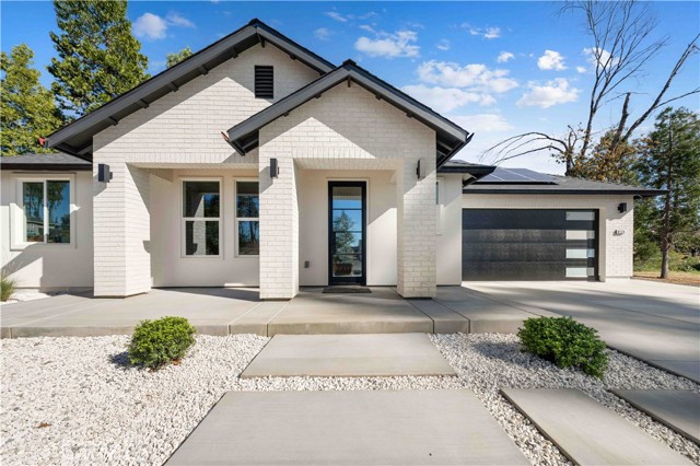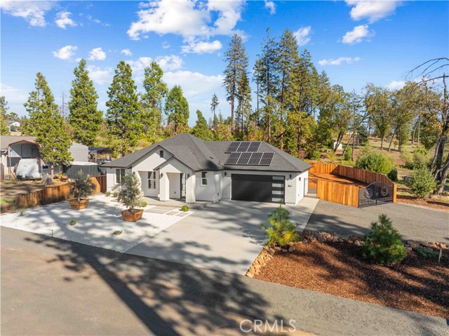 The outdoor spaces are designed for entertaining and relaxation, featuring a large covered paved patio, outdoor kitchen with hot water, and a flat, usable almost half-acre lot with RV access gates. The front yard is beautifully landscaped with automatic irrigation, pre-built for expansion. Owned solar adds energy efficiency, while proximity to shopping and a nearby creek enhances the lifestyle. With its abundance of upgrades, unique design, and resort-like details, this home perfectly blends luxury and functionality, a rare opportunity in Paradise, California.