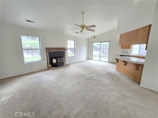 Inside, you’ll find an open floor plan, high ceilings, and a cozy wood-pellet fireplace in the living room. The dining area overlooks the living space, making it perfect for everyday living or hosting. Exterior features a concrete tile roof, low-maintenance backyard for relaxing, and a convenient rear garage access shared with the nearby Yosemite townhomes. Don’t miss this opportunity to call this home yours.