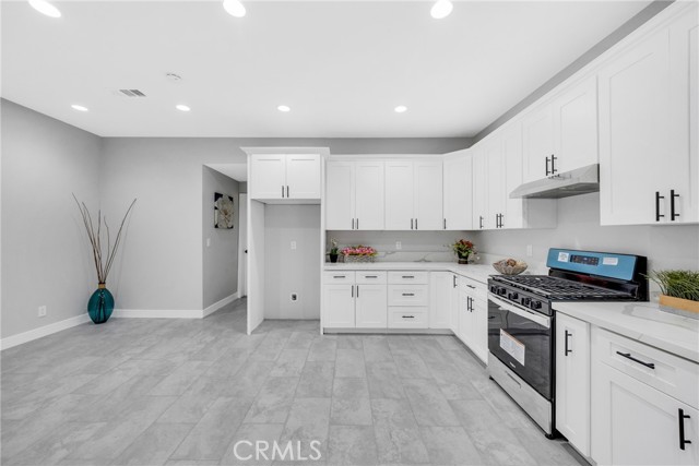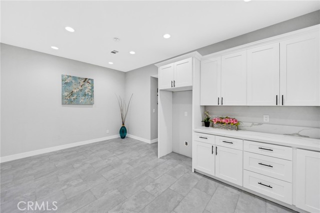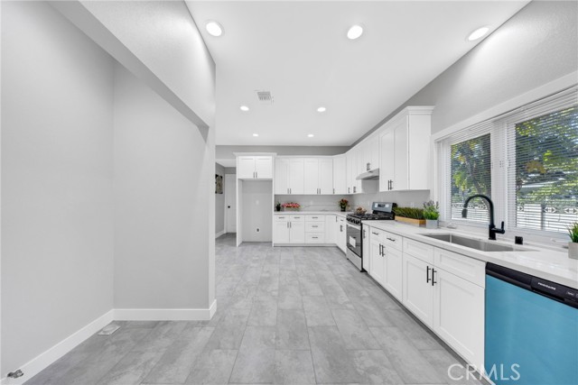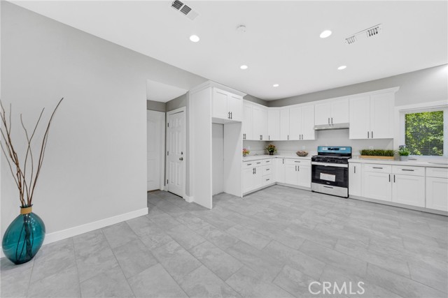 The kitchen is extremely spacious. There are new white shaker cabinets along with quartz countertop. All new fixtures