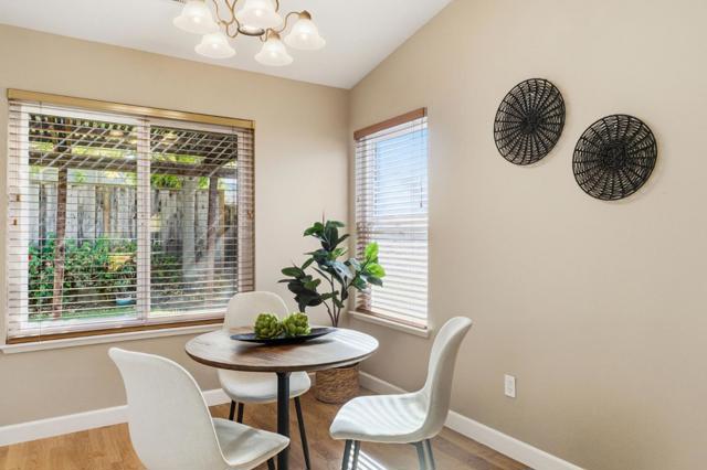 This approximately 1,880 square foot single-story house features four bedrooms and two full bathrooms. Located on a corner lot, the home has a spacious and well-maintained exterior, with lush landscaping and an inviting curb appeal.  The interior is filled with abundant natural light, creating a bright and airy atmosphere with a neutral color palette. A cozy fireplace adds warmth and ambiance to the livable area. The kitchen has ample cabinetry, granite countertops, and stainless steel appliances. The spacious kitchen layout provides plenty of room for meal preparation, and the family room, dining area, living room and formal dining area allow space for entertaining. Each of the four bedrooms is generously sized, providing plenty of space for comfortable living. The spacious primary bedroom has an attached bathroom with a bathtub, two showers, and a walk-in closet.  The backyard includes a large, covered patio and landscaping for outdoor enjoyment. Located in the desirable NorthWest quad of Gilroy, this meticulously maintained home has many updated features including central air conditioning, a water softener, and EV chargers. With its inviting curb appeal, open-concept layout, and numerous amenities, this property is an ideal choice for a wide range of homebuyers.