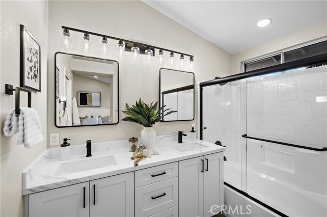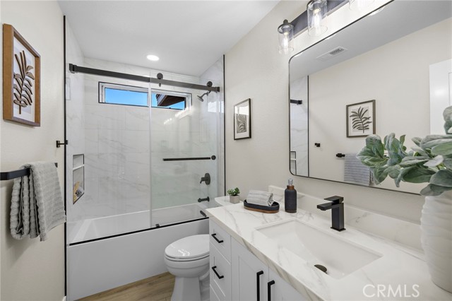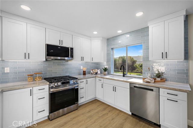 Experience elevated coastal living in this stunning California Brisas home, perfectly positioned in one of North Oceanside’s most sought-after neighborhoods. From the moment you arrive, you will be captivated by panoramic canyon and hillside views, complemented by refreshing ocean breezes and the serenity of an expansive private backyard that feels like your own secluded estate.Every inch of this residence has been meticulously remodeled with designer-caliber finishes and a bright, open layout. Step through the grand double doors into soaring ceilings and sun-filled spaces that radiate warmth and sophistication. A custom wood accent wall defines the elegant formal dining area, creating a stylish setting for gatherings and memorable evenings.The chef-inspired kitchen showcases soft-close shaker cabinetry, exotic quartzite countertops, a striking glass porcelain backsplash, and a complete suite of new LG stainless steel appliances including a gas range, oven, dishwasher, and a direct vented microwave. The spacious living room features a beautifully tiled fireplace and opens effortlessly to the outdoor entertaining area, ideal for enjoying golden sunsets over the hills.Luxury waterproof vinyl plank flooring, recessed LED lighting, and new shaker interior doors continue the elevated aesthetic throughout. The primary suite offers vaulted ceilings, dual closets, and a spa-like bath with soft-close cabinetry, acrylic glass countertops, matte black fixtures and hardware, and dual recessed mirrored vanities. The guest bath is equally refined with marble-style porcelain tile, a deep soaking tub, and matching finishes.Additional highlights include a newer water heater and furnace, an epoxied garage with new door and opener, and preinstalled 220V wiring and AC line sets for effortless cooling upgrades, though the coastal breezes make air conditioning optional.The entire inside and outside of the home has received fresh designer paint, the dual pane windows have been detailed and repaired for full functionality, and the irrigation system has received an overhaul with new valves, sprinkler heads and timer.Ideally located near CA 76 and I 5, residents enjoy quick access to Oceanside Harbor, the Pier, and the scenic San Luis Rey River Trail, perfect for biking, jogging, or leisurely walks to the beach. This exceptional home embodies the essence of modern coastal luxury.
