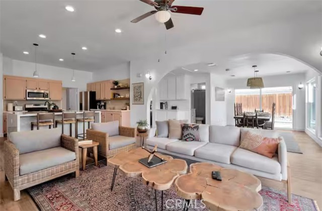 Step into a bright, open-concept living space where style meets functionality. The chef’s kitchen comes fully equipped with a Keurig Duo coffee maker, blender, toaster, and plenty of dishware for large gatherings. The adjoining dining and living areas offer ample seating, perfect for hosting friends and family.