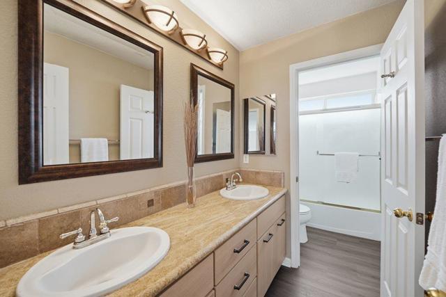 Welcome to this beautifully maintained 5 BD/3 BA corner home offering 3,012 SF of thoughtfully designed living space, ideally located in Gilroy's highly sought-after northwest quad, walking distance to Christopher High School. This well-appointed floor plan features a desirable main-level guest suite w/ a full bathroom, ideal for multigenerational living or visiting guests. Soaring ceilings, an inviting foyer, and a grand stairwell that immediately captures your attention create a striking first impression, leading into formal living and dining areas. The spacious family room flows seamlessly into a bright breakfast nook and a gourmet kitchen complete w/ a walk-in pantry, refaced cabinetry, double ovens, stainless steel appliances, and a gas cooktop. Upstairs, you'll find a generous landing and 4 additional bedrooms, including one w/ a versatile bonus nook, perfect as a play area, extra storage, study space, or creative retreat. The primary suite features dual closets w/ built-in organizers. Recent upgrades include owned solar, a newer water heater & dual-zone HVAC system for year-round comfort. The 3-car garage is equipped w/ 220V for EV charging. Step outside to a private backyard featuring a relaxing hot tub.This home combines space, functionality, and an unbeatable location.