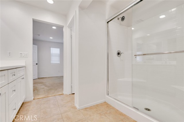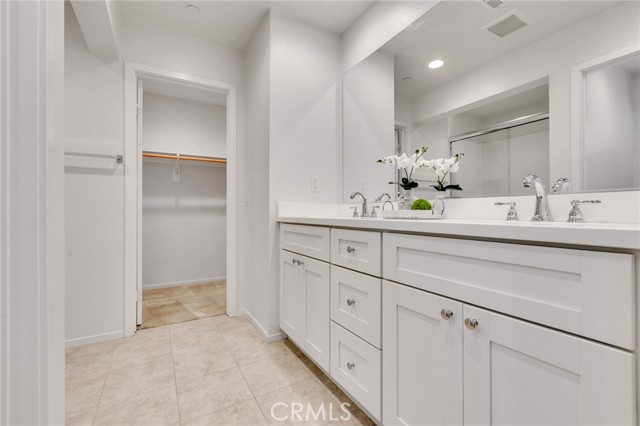 Spacious master suite with dual sinks, a separate walk-in shower, and a luxurious soaking tub