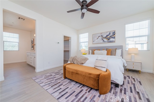 Gorgeous Single Family Home built by DR Horton is located at Montecito Place community in Chino. Open floor plan. Features 4 bedroom and 3 bath with 2034 sq.ft. Downstairs with 1 bedroom and 1 bath. Spacious living room, formal dining, Gourmet open kitchen features granite center Island countertops, stainless steel appliances, cabinet, and Pantry. Open and Airy. The sliding door to the private patio which is great for BBQ'S. Wood flooring. New interior paint. The stairway leads you upstairs to the master suite with its own bathroom, dual sinks, separate shower, huge walk-in closet and a treat. Another 2 bedrooms with 1 full bath. Individual Laundry room. Central A/C unit. Community offers a sparkling swimming pool, SPA, and BBQ area **Low HOA fee and low property tax, and NO Mello-Roos tax** Close to freeway 10, 60, 71 and Chino town square.