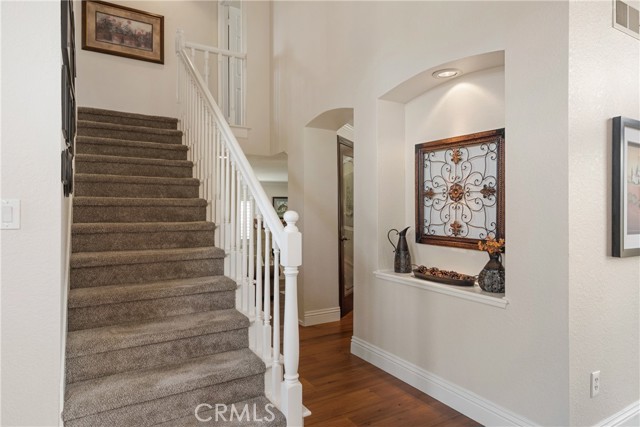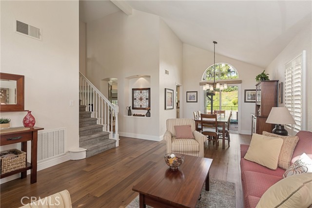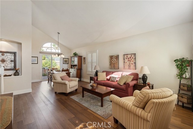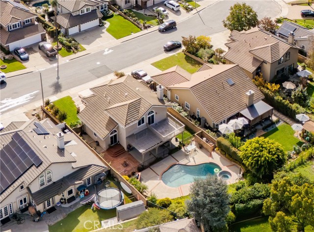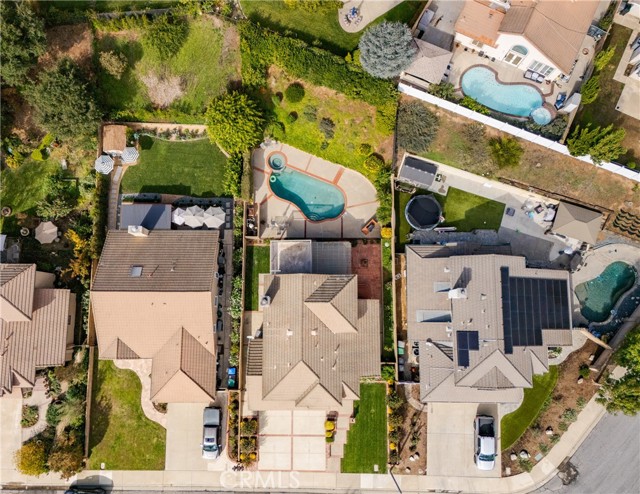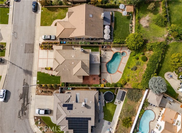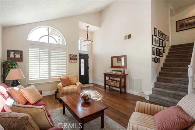 Absolutely stunning North La Verne pool home, located on a quiet cul-de-sac. A perfectly manicured front yard welcomes you into this meticulously maintained residence. Upon entry, soaring ceilings create a bright, open, and airy atmosphere. The formal living room, with real hardwood floors, seamlessly flows into the dining room, which features a sliding glass door that opens to the patio.