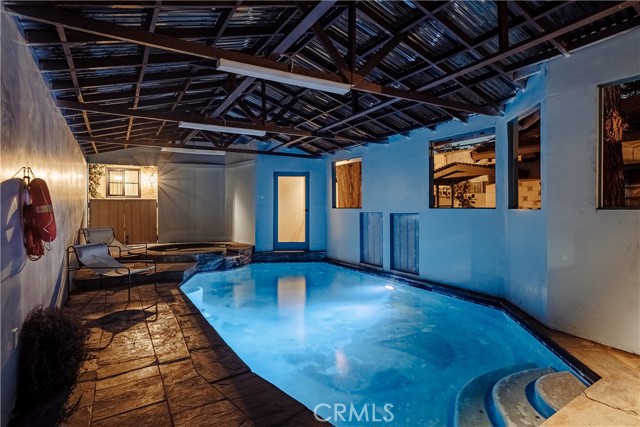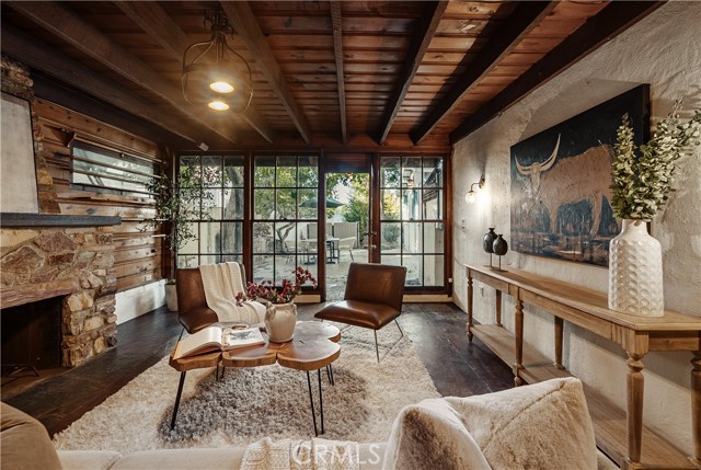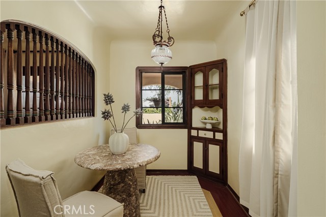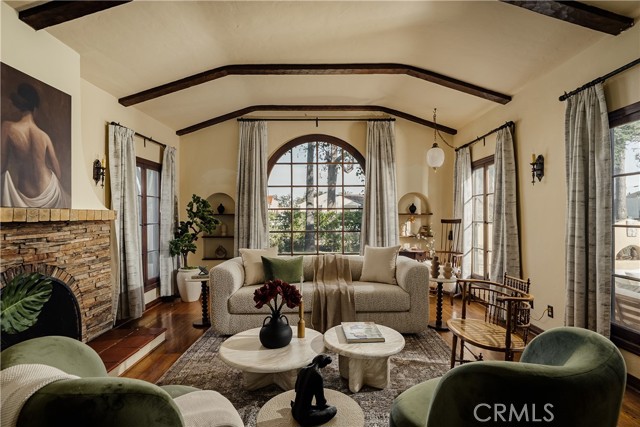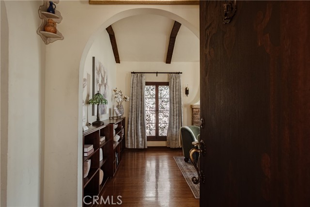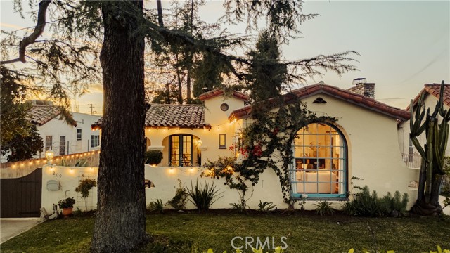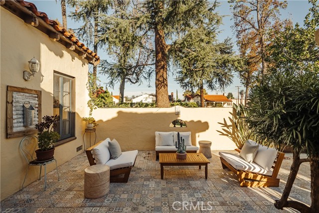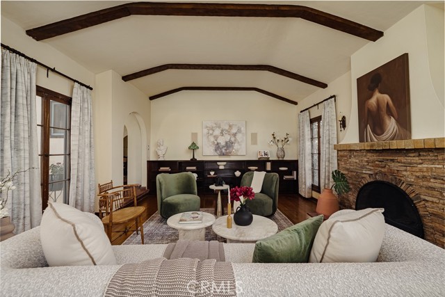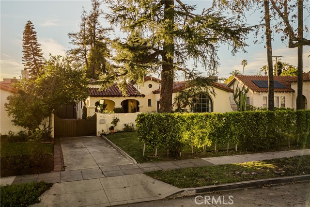 Presenting a rare 1930 Spanish Colonial estate with pool, paid off solar, and detached studio. An architectural showpiece that seamlessly blends historic elegance with refined modern upgrades. Homes of this caliber are seldom available, offering authentic period craftsmanship, timeless character, and exceptional lifestyle amenities in one extraordinary residence. From the moment you arrive, the home’s classic Spanish façade, arched veranda, and original casement windows set a tone of understated sophistication. Inside, a dramatic grand living room showcases soaring barrel ceilings with original wood planking, arched architectural niches, vintage sconces, a statement stacked-stone fireplace, and expansive windows that flood the space with natural light—hallmarks of true Spanish Colonial design. The formal dining room is a statement in historic luxury, featuring custom inlaid hardwood floors, an arched built-in hutch alcove, original oak doors, and French doors opening to the outdoor entertaining area. The kitchen is both functional and artistic, highlighted by a signature arched Spanish cooking alcove with artisan tilework, upgraded cabinetry, and sleek quartz countertops that blend modern convenience with vintage charm. A sunlit breakfast nook with built-in curio cabinetry adds warmth and character. A refined hallway lined with original millwork, sconces, and archways leads to three spacious bedroom suites, each with its own private bathroom, ideal for comfort, privacy, and multigenerational living. Additional interior features include central HVAC, indoor laundry room, and a service basement. Designed for elevated outdoor living, the backyard features a full-length wood deck, covered heated pool and spa, custom brick fireplace, and outdoor shower, creating a private retreat perfect for entertaining or relaxing year-round. At the rear of the property sits a detached 220 sqft structure (not included in main square footage) with fireplace, offering exceptional versatility as a studio, office, gym, guest space, creative suite, or potential ADU conversion. The gated property also provides an extended private driveway leading to a detached two-car garage with ample additional parking. Located near Alhambra’s vibrant Main Street district and just minutes from Pasadena’s premier dining, shopping, cultural attractions, parks, Old Town Pasadena and the iconic Rose Bowl, this home combines historic prestige w/ modern lifestyle convenience.