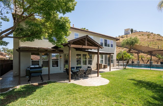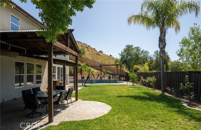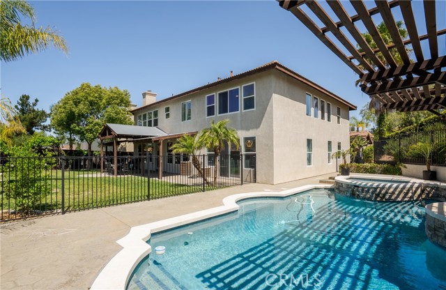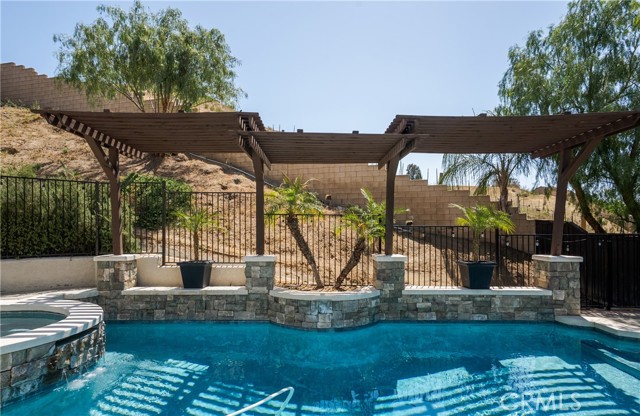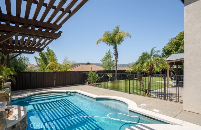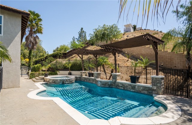 The backyard is designed as a private retreat, featuring a pool, spa, covered patio, and landscaped grounds—ideal for both relaxing and entertaining while taking in the surrounding views.