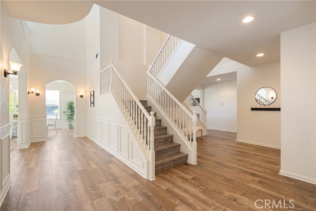 From the moment you arrive, a gated archway and beautifully landscaped courtyard create a grand sense of arrival, leading into a striking entry with soaring vaulted ceilings.